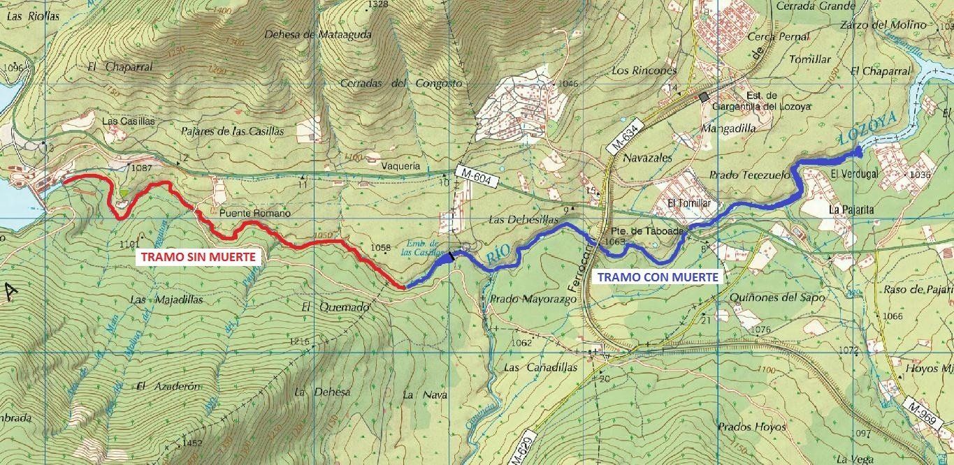 In the upper part of the preserve is the section without death that is occasionally refilled with common trout and that has an approximate length of 3.5 km. This section goes from the wall of the Pinilla reservoir to the mouth of the river in the small dam. de Las Casillas, from which a disused old mill collected its name, which gives its name to the preserve.